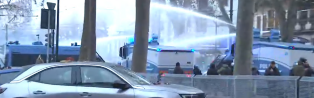 Torino, idranti in azione sul corteo del centro sociale Askatasuna