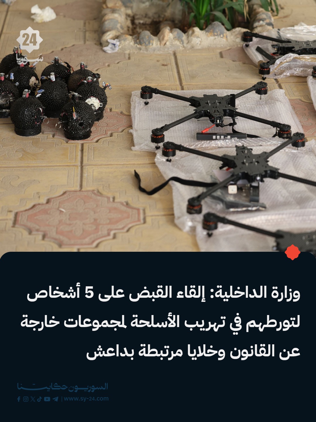 قائد الأمن الداخلي في محافظة ريف دمشق، العميد أحمد الدالاتي: تنفيذ عملية أمنية نوعية في منطقة قدسيا بالتعاون مع قيادة الأمن الداخلي في درعا إلقاء القبض على خمسة أشخاص لتورطهم في تهريب الأسلحة لمجموعات خارجة عن القانون وخلايا مرتبطة بداعش العملية جاءت بعد ورود معلومات دقيقة وموثوقة حول نشاط مشبوه في إحدى المزارع القوة الأمنية […] The post قائد الأمن الداخلي في محافظة ريف دمشق، العميد أحمد الدالاتي: appeared first on SY24 .