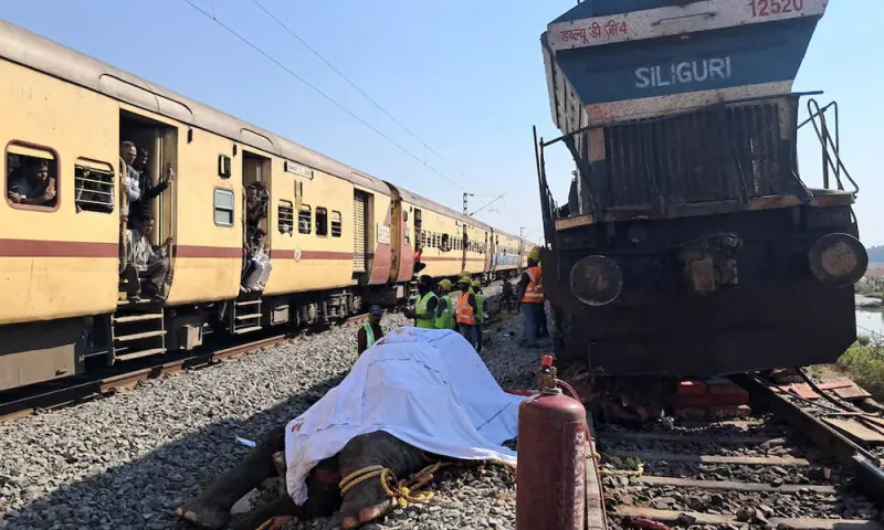 GUWAHATI, India, Dec 20 (Reuters) - Seven elephants were killed and one injured when a Delhi-bound train collided with a herd in northeast India early on Saturday, district police chief VV Rakesh Reddy said. The incident in the Hojai district of Assam state occurred at a location that is not a designated elephant corridor, Northeast Frontier Railway said in a statement. The locomotive pilot applied the emergency brakes upon seeing the herd, but the elephants rushed toward the train, the company said. The collision at 2:17 a.m. (2047 GMT on Friday) caused the locomotive and five coaches of the train to derail, but no people were injured, the statement said. “Trains scheduled to pass through that section are being diverted through another line. Restoration works are on,” the railway said.