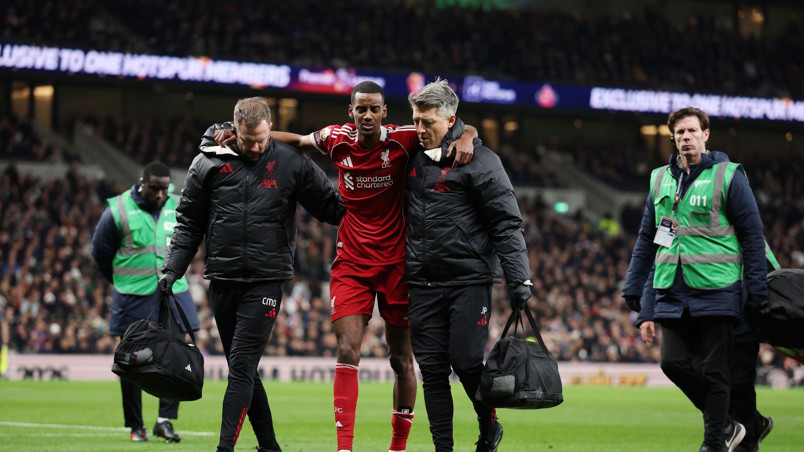 Liverpool vann góðan 2-1 sigur á Tottenham í 17.umferð ensku úrvalsdeildarinnar í kvöld þar sem að tvö rauð spjöld fóru á loft. Stuðningsmenn Liverpool geta leyft sér að gleðjast yfir sigrinum en sorg gerir þó einnig vart um sig. Alexander Isak skoraði fyrsta mark liðsins en þurfti í kjölfarið að fara meiddur af velli.