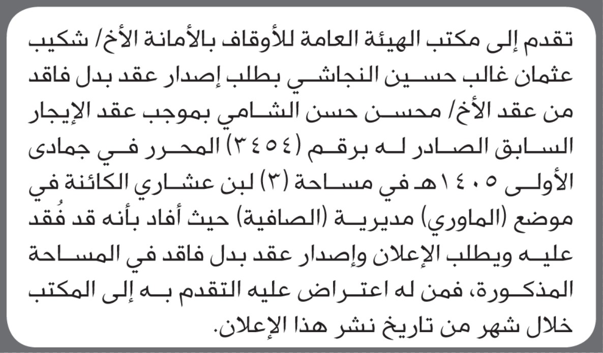 تقدم الى هيئة الأوقاف شكيب النجاشي بطلب إصدار عقد بدل فاقد