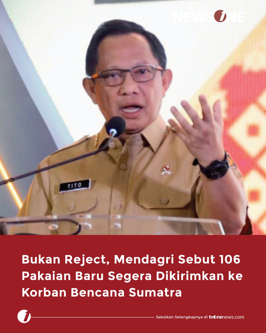 Menteri Dalam Negeri (Mendagri) Tito Karnavian menyebut 106 ribu pakaian baru akan segera dikirimkan kepada korban banjir dan longsor di Aceh-Sumatra.