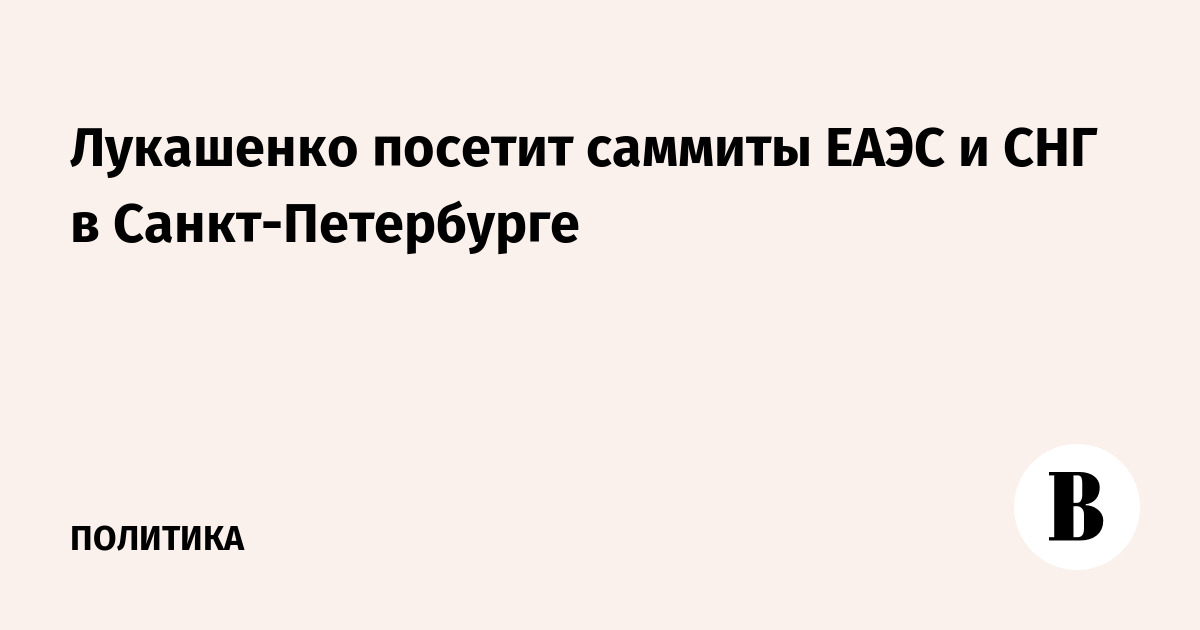 Лукашенко посетит саммиты ЕАЭС и СНГ в Санкт-Петербурге