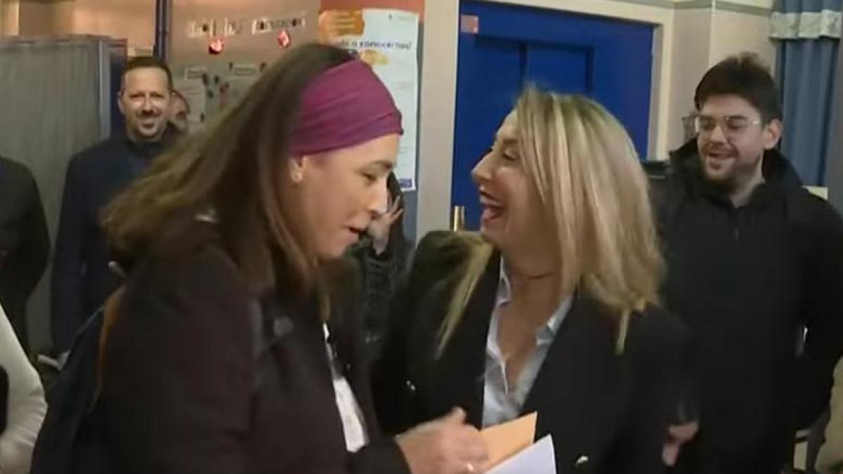 María Guardiola va a votar a un colegio de Cáceres, se intenta colar y la escena parece digna de 'The Office'