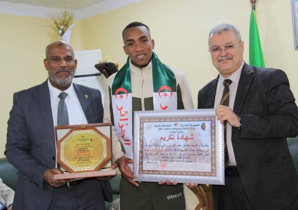 أشرف والي توقرت، عثمان عبد العزيز، مساء اليوم، على مراسم تكريم اللاعب الدولي أشرف عبادة، تقديرًا لتألقه ومساهمته المشرفة في رفع راية الجزائر وتشريف الولاية، وذلك على هامش مشاركته في منافسة كأس العرب فيفا قطر 2025. وأعرب والي الولاية بهذه المناسبة عن اعتزازه الكبير بالنتائج الإيجابية التي حققها اللاعب، مثمنًا المجهودات التي بذلها خلال مشاركته […] The post بالصور.. والي توقرت يكرّم أشرف عبادة appeared first on النهار أونلاين .