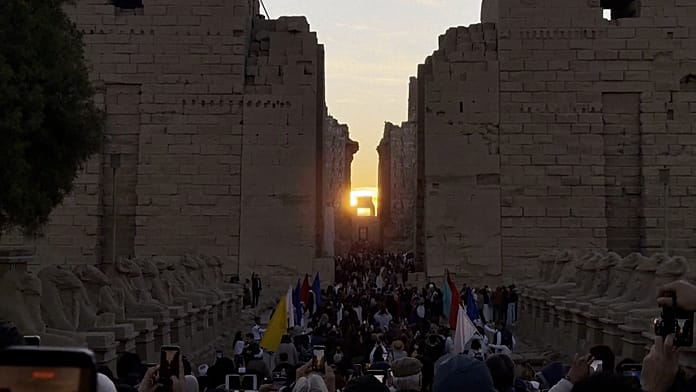 Cientos se reunieron en Luxor para ver el amanecer del solsticio de invierno alineado con el templo de Amón Re en Karnak, que marca el inicio del invierno astronómico.