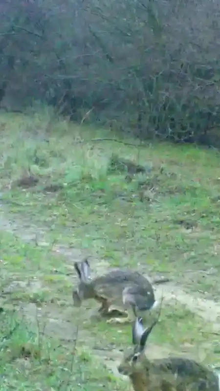 fotokapanına takılan iki tavşan gülümsetti