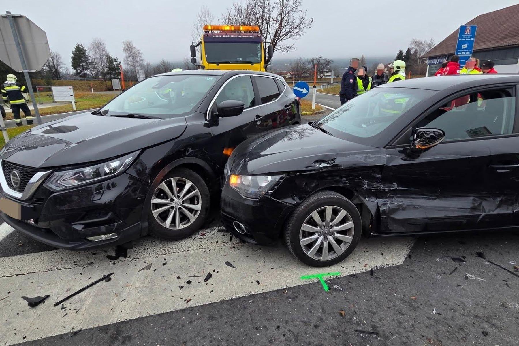 Bei einem Verkehrsunfall mit drei Autos auf der Zollfeldstraße in Wutschein wurden zwei Frauen verletzt. Sie wurden ins Klinikum Klagenfurt gebracht.