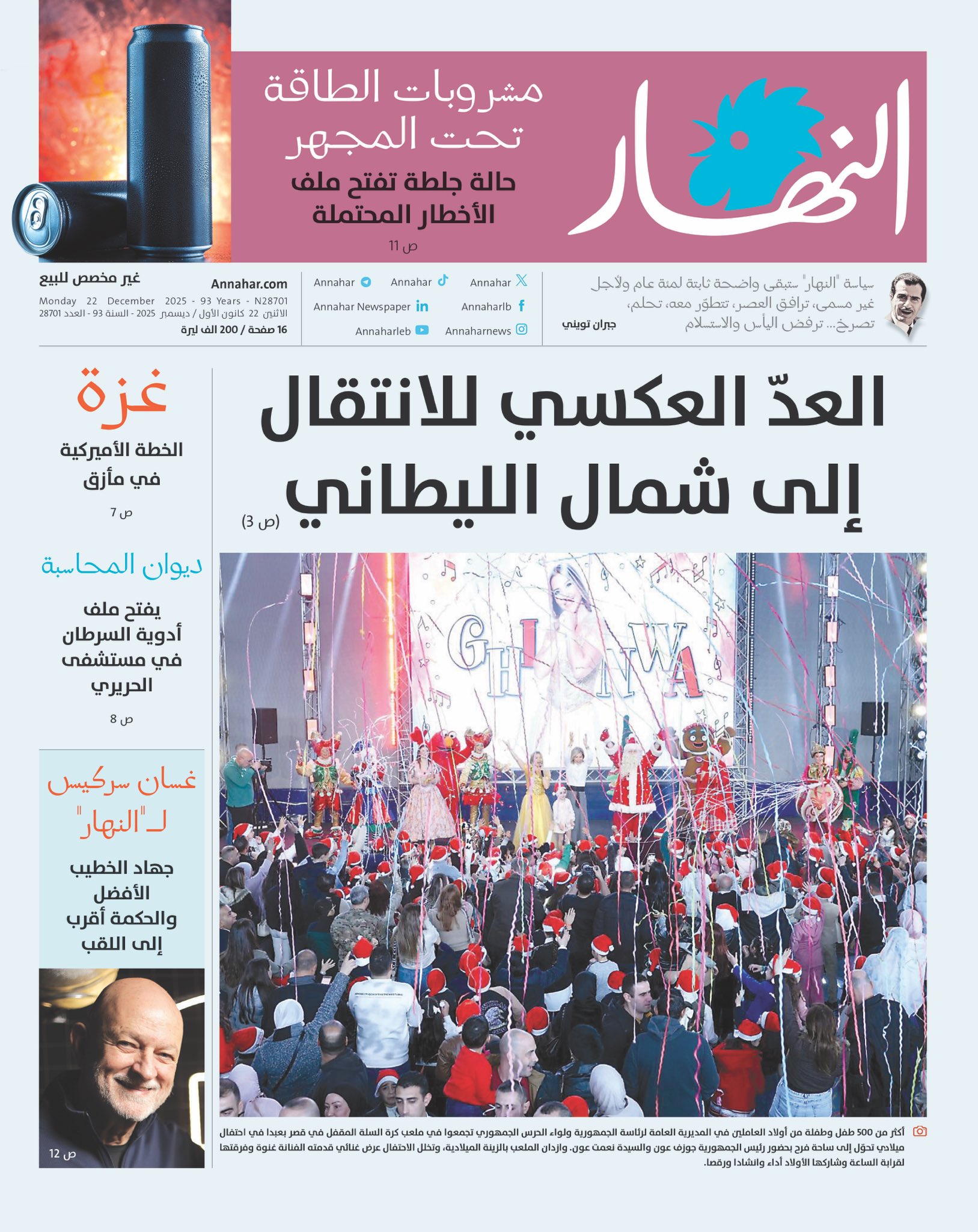 إليكم أبرز عناوين "النهار" ليوم الإثنين 22 كانون الأول 2025: