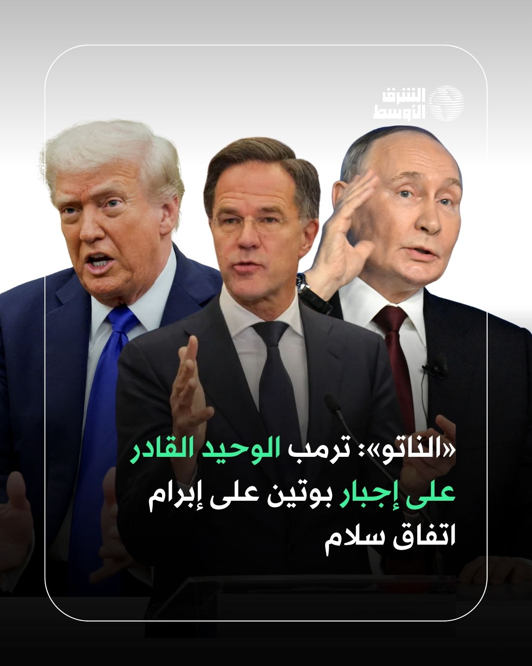 أمين عام «الناتو»: ترمب هو الوحيد الذي تمكن من دفع بوتين إلى طاولة المفاوضات، وهو الوحيد القادر في النهاية على إجبار بوتين على التوصل إلى اتفاق سلام