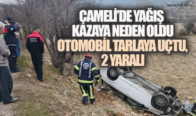 Çameli’de yağış kazaya neden oldu: Otomobil tarlaya uçtu, 2 yaralı