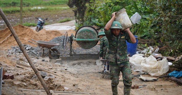 Những ngôi nhà vùng lũ được bộ đội xây dựng đang dần hoàn thiện, khiến người dân háo hức và bất ngờ trước tay nghề vững vàng của các anh.