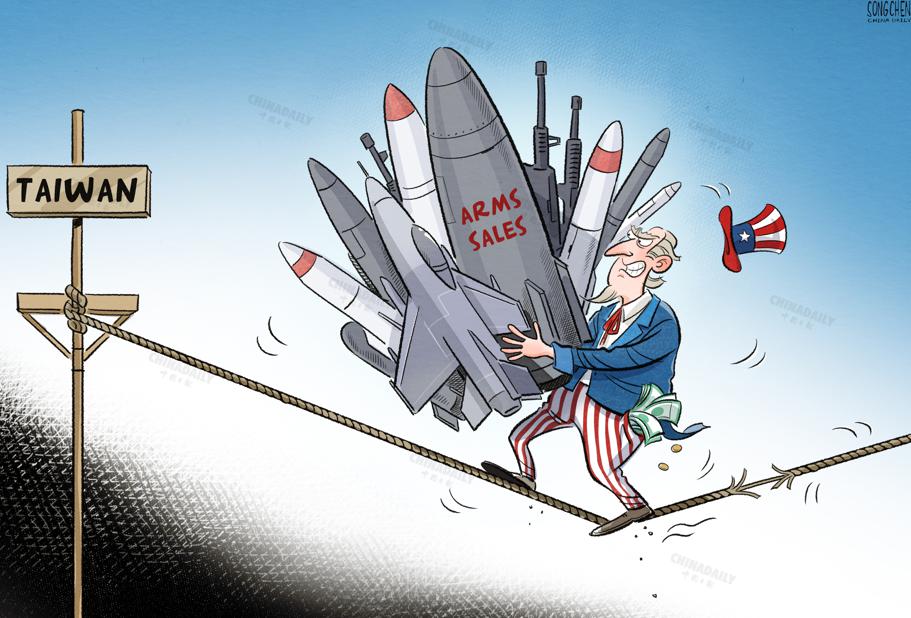 #ChinaDailyCartoon US walking a tight rope with arms sales to #Taiwan #US