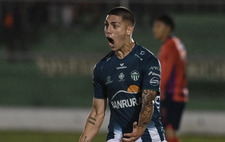 El delantero argentino anotó de cabeza, al minuto 41, tras un preciso centro de Óscar Castellanos, dándole la ventaja a los panzas verdes en el Estadio Pensativo.