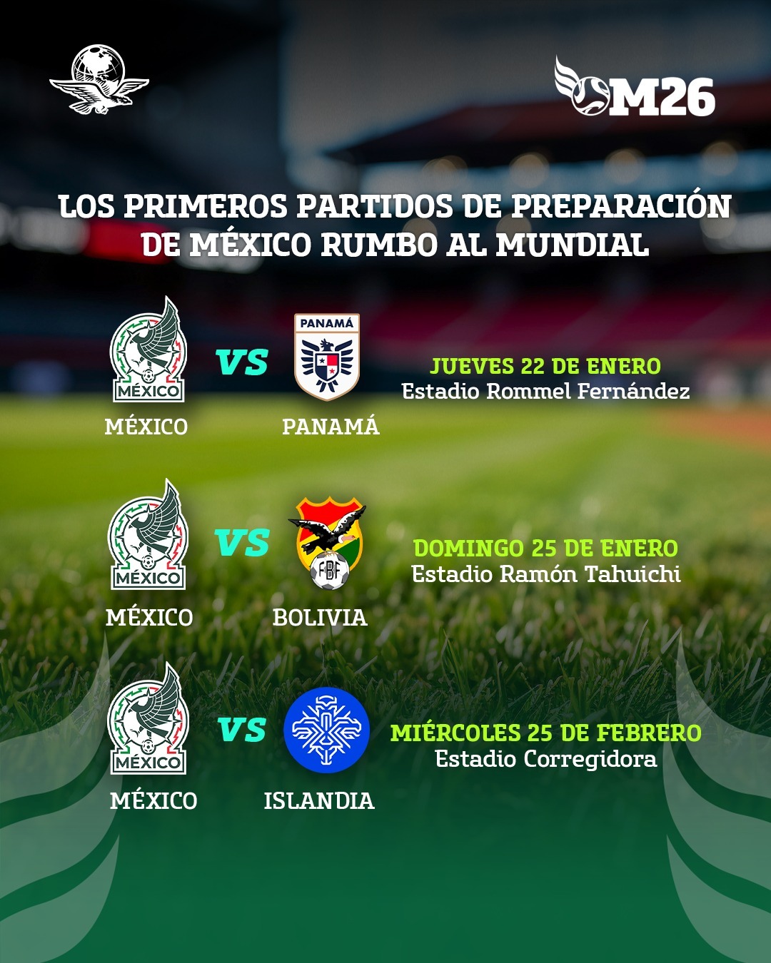 ⚽️ Estos serán los primeros partidos de la Selección Mexicana, liderada por Javier Aguirre, en el 2026 como preparación rumbo a la Copa del Mundo