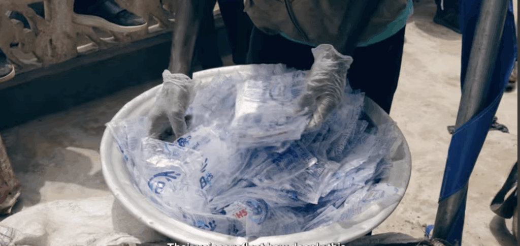 An unusual sight of a long queue, comprising mainly women and children, forms underneath a pavilion in the middle of the Elmina community, a suburb of Ghana’s Central region. Typically, such winding queues are held either during national or communal activities. But today’s is different. Tightly gripped in the hands of these queuers are bags and bins containing various kinds of plastics they collected, the new currency aside from the cedi. With their gaze fixed on the ultimate goal, they move quietly and gaily towards the table hosting their hot afternoon meal. Just like a barter trade, the community folks exchange plastics for a satisfying and nutritious meal.