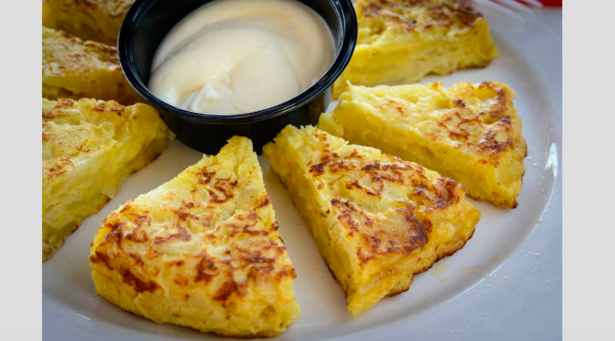 Tortilla de patata con cebolla y queso Roquefort