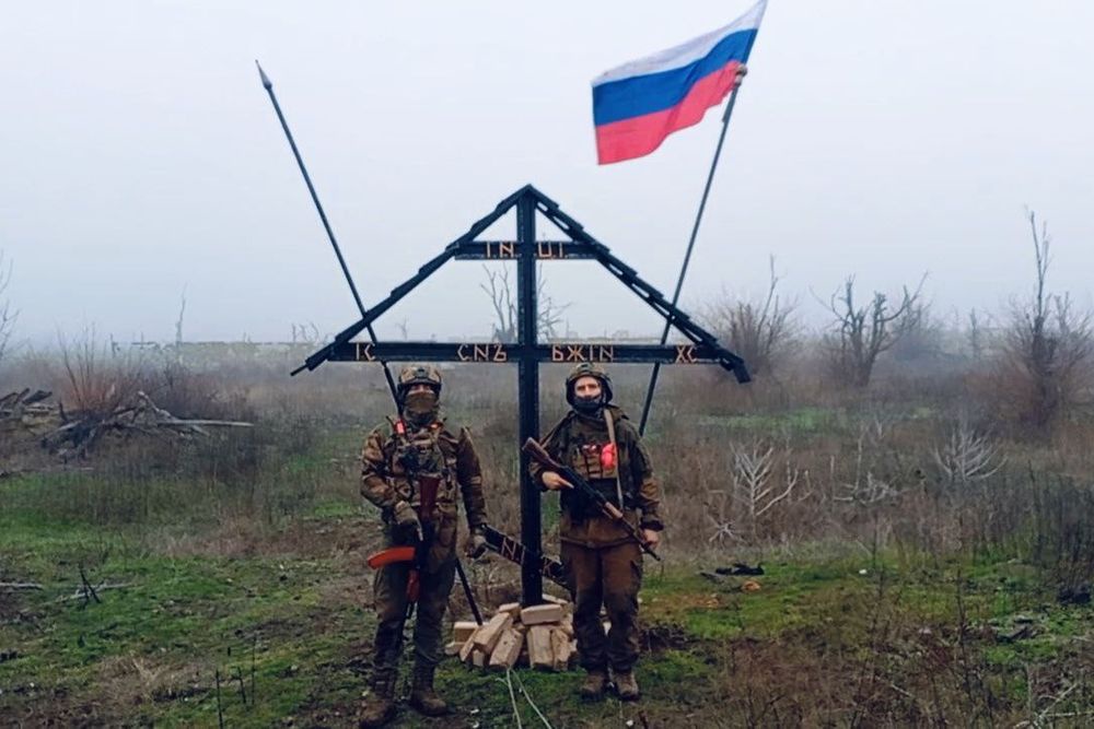 В Запорожской области военнослужащие 42-й гвардейской мотострелковой Евпаторийской Краснознаменной дивизии установили в центре села Работино Поклонный крест. Рядом с импровизированным памятником бойцы подняли российский триколор.