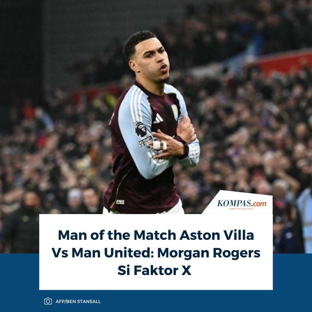 Morgan Rogers terpilih sebagai Man of the Match Aston Villa vs Man United, partai pekan ke-17 Liga Inggris 2025-2026, ia memborong dua gol kemenangan.