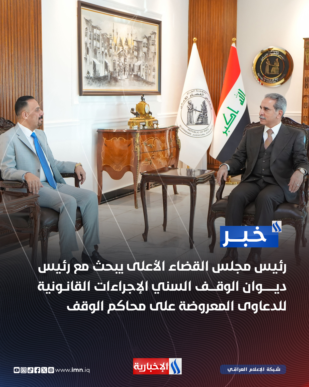 رئيس مجلس القضاء الأعلى يبحث مع رئيس ديوان الوقف السني الإجراءات القانونية للدعاوى المعروضة على محاكم الوقف