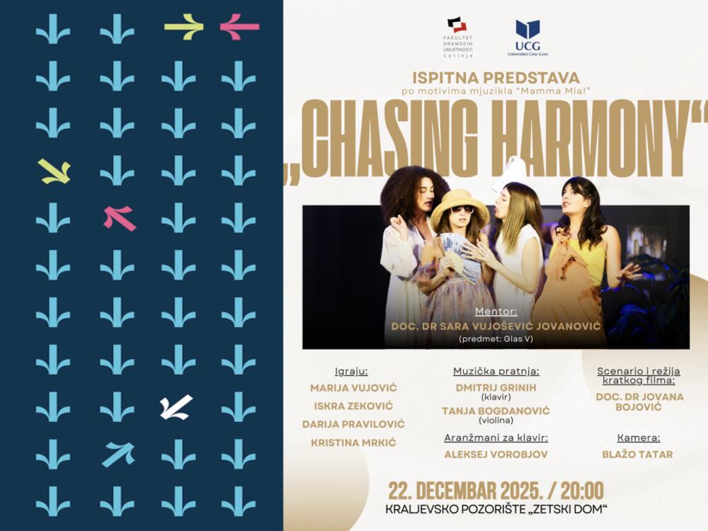 Ispitna predstava "Chasing Harmony" studenata FDU sa Cetinja, biće izvedena danas u Zetskom domu i prikazan istoimeni kratki film