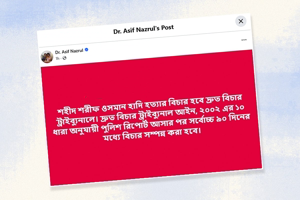 ওসমান হাদি হত্যার বিচার হবে দ্রুত বিচার ট্রাইব্যুনালে: আসিফ নজরুল