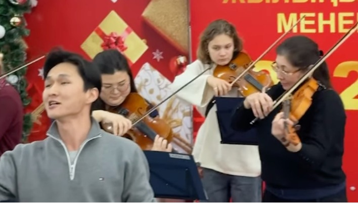 Чуйский камерный оркестр оказался среди пассажиров, которые волей судьбы и нелетной погоды застряли в аэропорту Оша. И музыканты решили зря времени не терять. Рассказываем о маленьком новогоднем чуде: