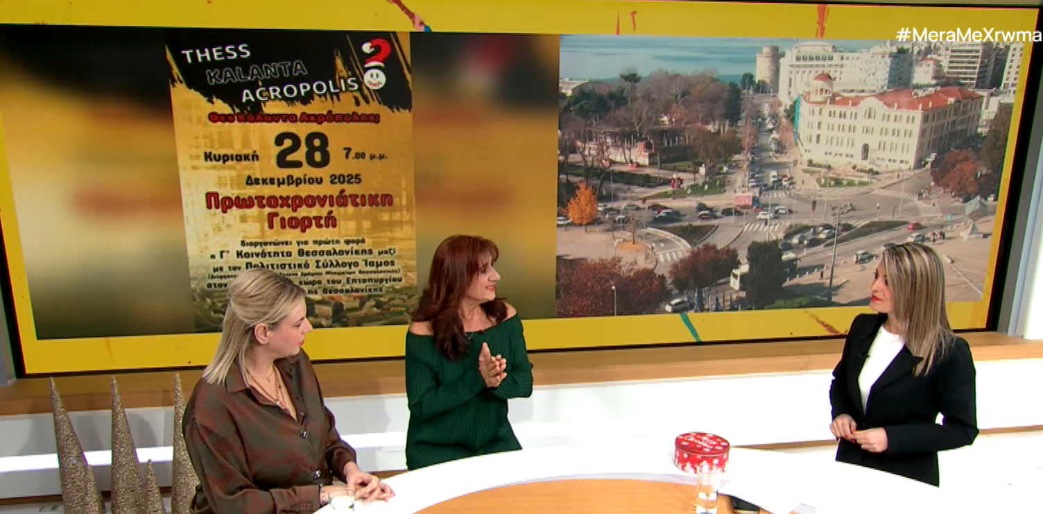 Η Γ΄ δημοτική Κοινότητα σε συνεργασία με τον Πολιτιστικό Σύλλογο Ίαμος – τη διοργανώτρια ομάδα του Αγώνα Δρόμου Μνημείων Θεσσαλονίκης – διοργανώνουν μια βραδιά με πρωτοχρονιάτικα κάλαντα στην είσοδο του Επταπυργίου. Η επιμέλεια της παρουσίασης ανήκει στην Φωτεινή Κατσάλη, η οποία βρέθηκε στο στούντιο της εκπομπής της ΕΡΤ3 «Μέρα με Χρώμα» μαζί με την αντιπρόεδρο ... Περισσότερα www.ertnews.gr