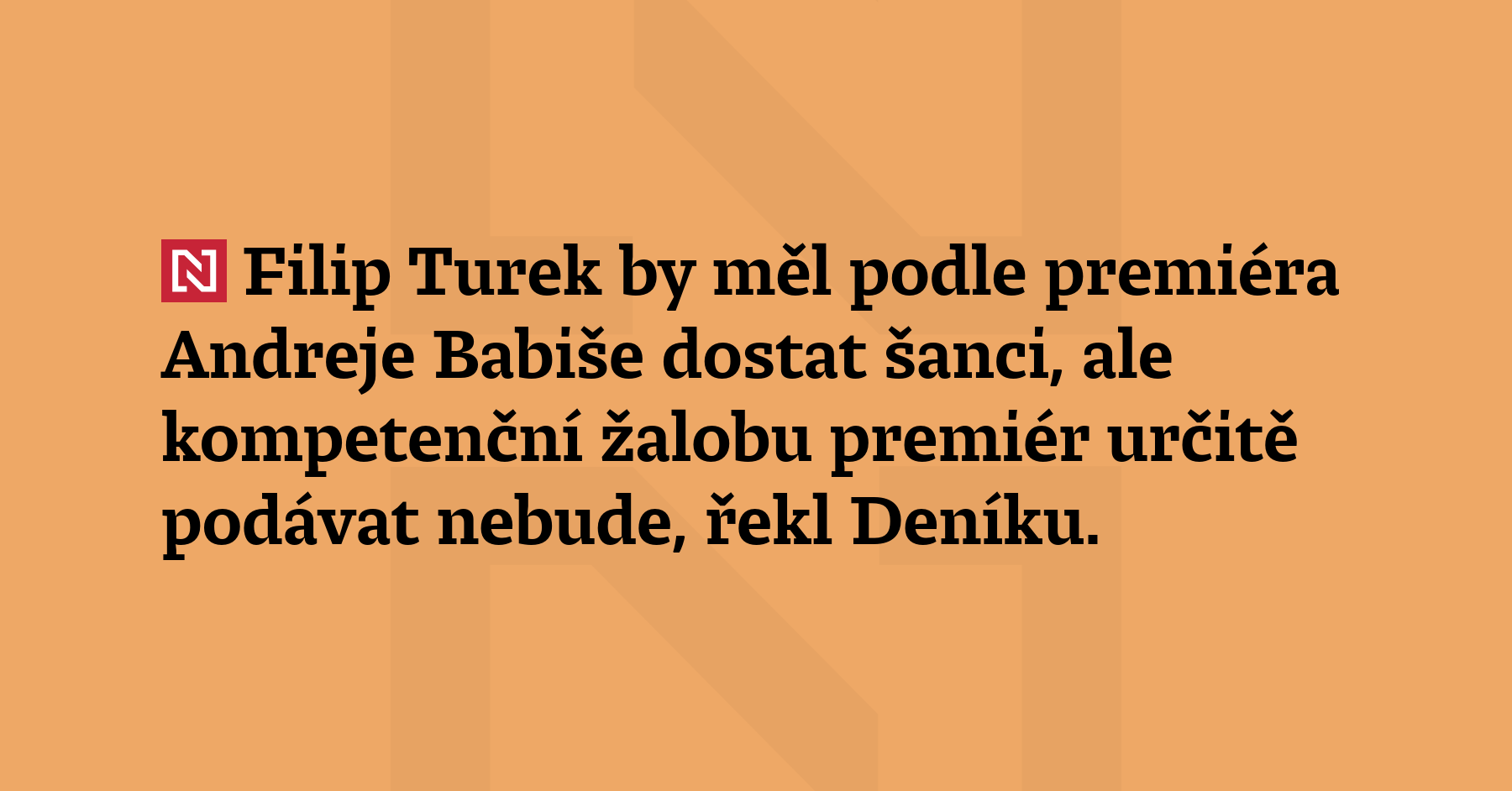 Filip Turek by měl podle premiéra Andreje Babiše dostat šanci, ale kompetenční žalobu premiér určitě podávat nebude, řekl Deníku. Turek musí podle něj prezidenta přesvědčit. (ČTK)
