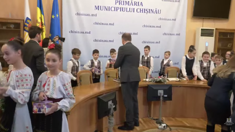 (video) Oaspeți așteptați la ședința Primăriei Chișinău. Prima ceată de colindători a pășit pragul cu urări. Ceban: „Vă mulțumim din suflet, sunteți extraordinari!”