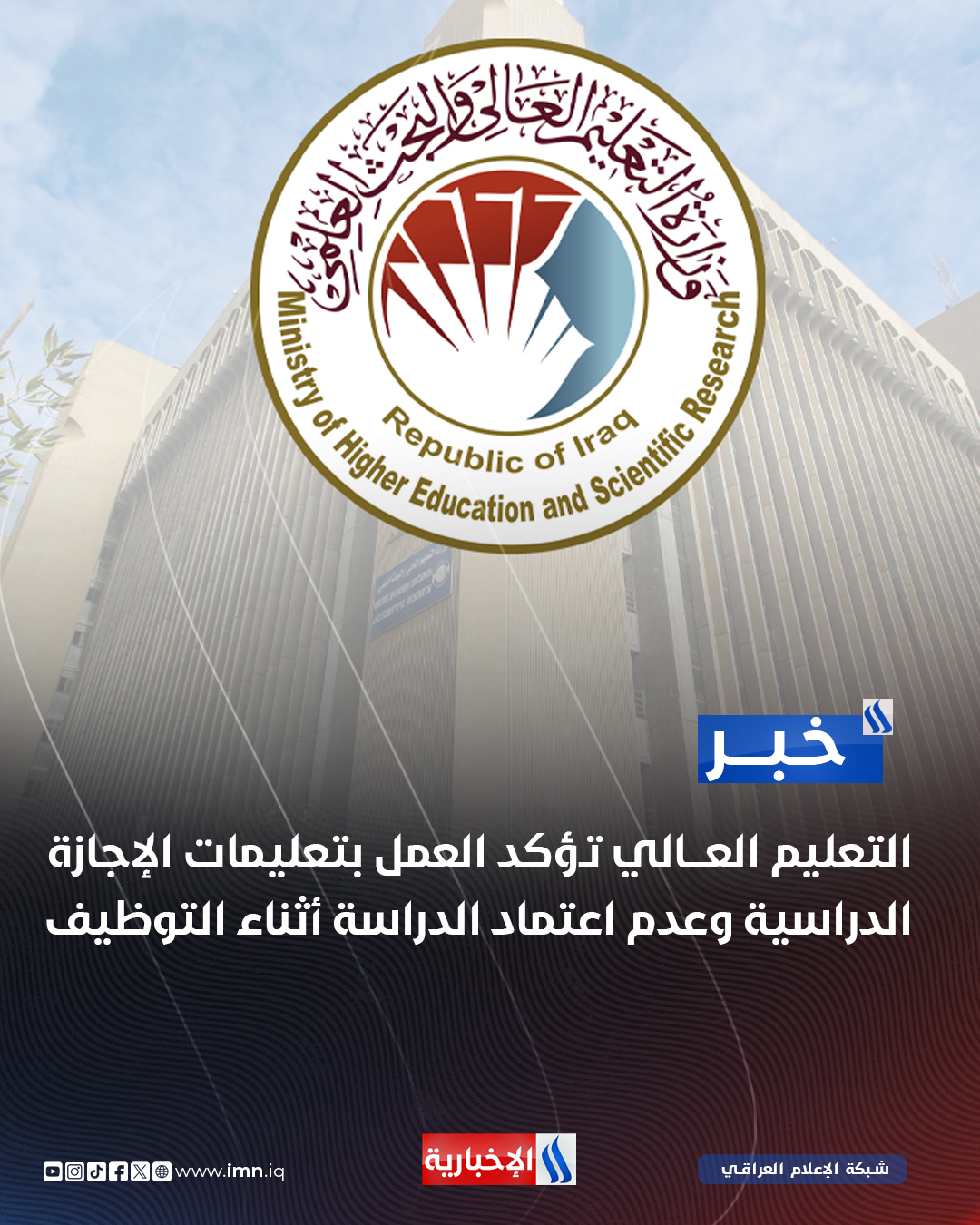 التعليم العالي تؤكد العمل بتعليمات الإجازة الدراسية وعدم اعتماد الدراسة أثناء التوظيف