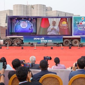 ত্রয়োদশ জাতীয় সংসদ নির্বাচন ও জুলাই জাতীয় সনদের বিষয়ে গণভোট নিয়ে সারা দেশে প্রচারণার লক্ষ্যে যাত্রা শুরু করেছে ১০টি ভোটের গাড়ি—‘সুপার ক্যারাভান’। সোমবার (২২ ডিসেম্বর) জাতীয় সংসদ ভবনের দক্ষিণ প্লাজায় আনুষ্ঠানিক উদ্বোধনের মধ্য দিয়ে সুপার ক্যারাভানের যাত্রা শুরু হয়। অনুষ্ঠানস্থলে উপস্থিত থেকে ফিতা কেটে ভোটের গাড়ির উদ্বোধন করেন তথ্য ও সম্প্রচার উপদেষ্টা সৈয়দা রিজওয়ানা হাসান,... বিস্তারিত