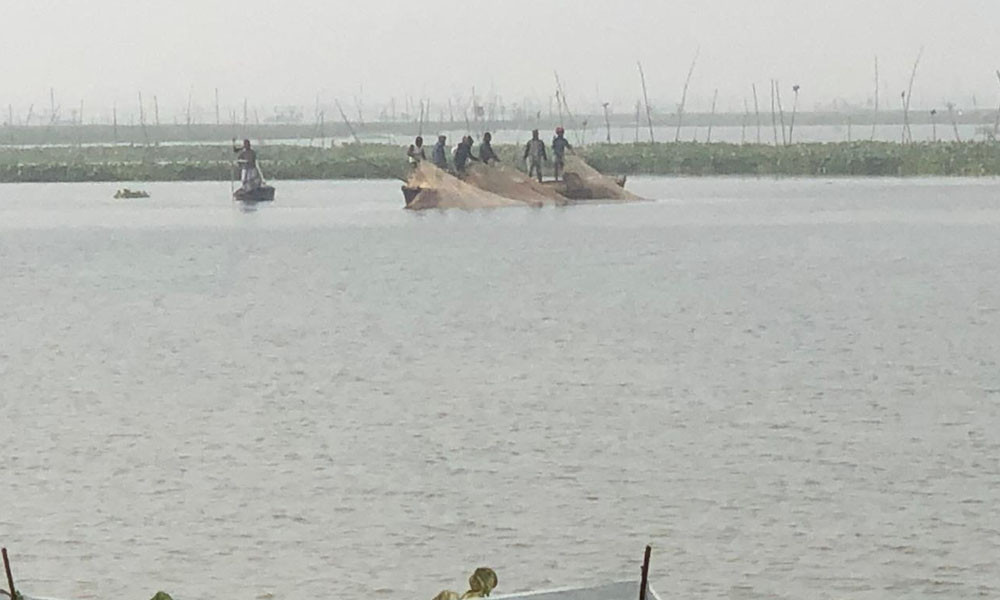 সাপাহারের জবই বিলে মাছ শিকার শুরু
