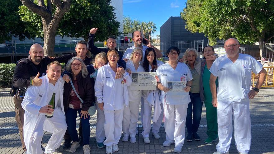 La alegría también se ha vivido intensamente a las puertas del Hospital de Sant Joan, donde este lunes se sucedían las sonrisas entre los trabajadores, en su mayoría celadores, que resultaron agraciados con el tercer premio con el número que les había comprado su anterior jefe de personal, José Luis Aguado. La mayor parte del premio ha recaído entre los celadores, aunque también ha alcanzado a vigilantes de seguridad y a un equipo de cirugía ocular del centro hospitalario.