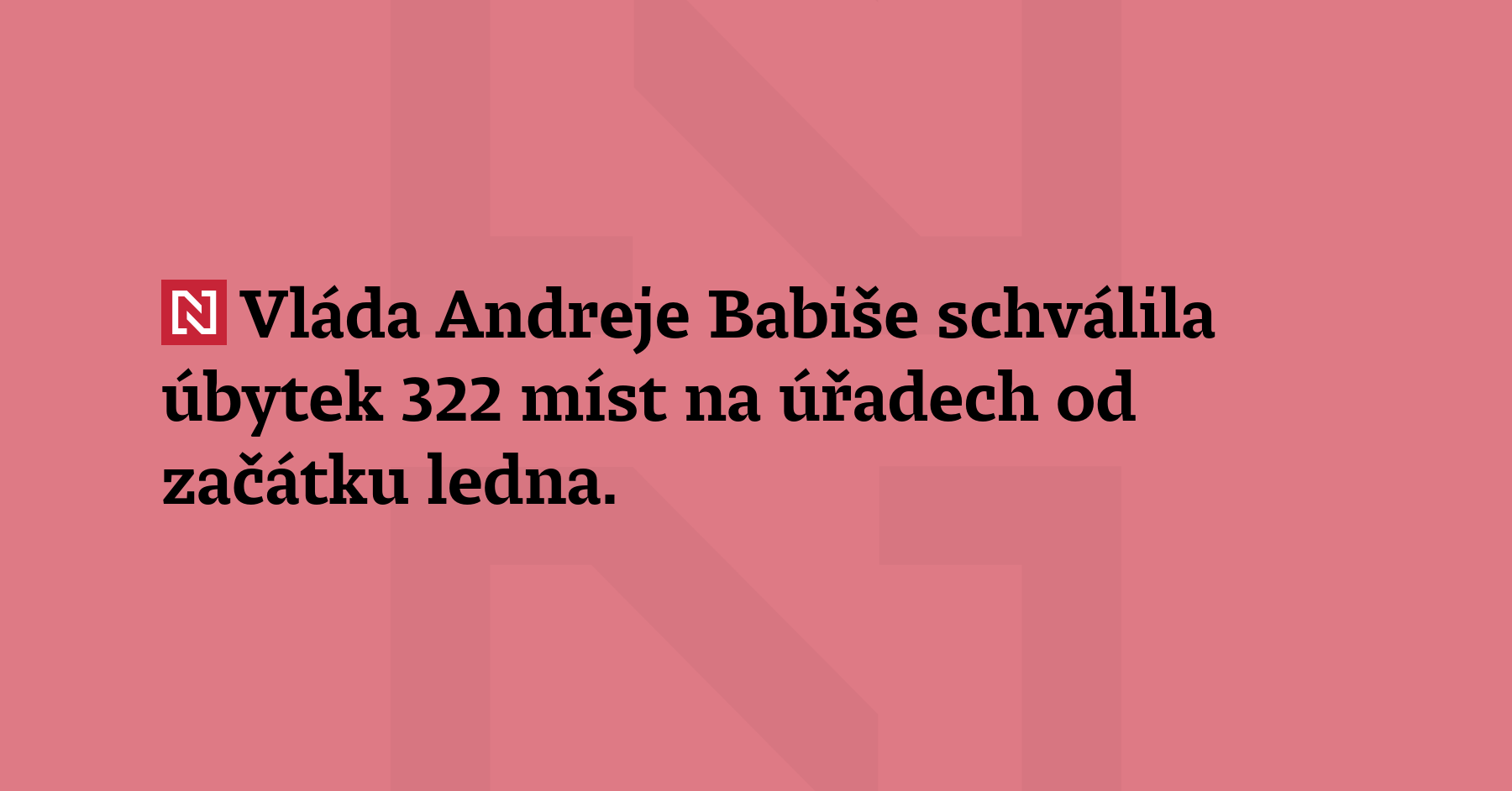 Vláda Andreje Babiše schválila úbytek 322 míst na úřadech od začátku ledna. Nejvíce míst ubude na úřadu vlády, ministerstvech financí a průmyslu, oznámil na tiskové konferenci předseda vlády. (ČT24)