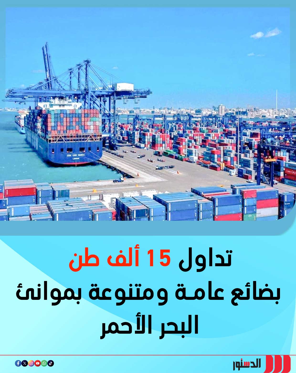 تداول 15 ألف طن بضائع عامة ومتنوعة بموانئ البحر الأحمر