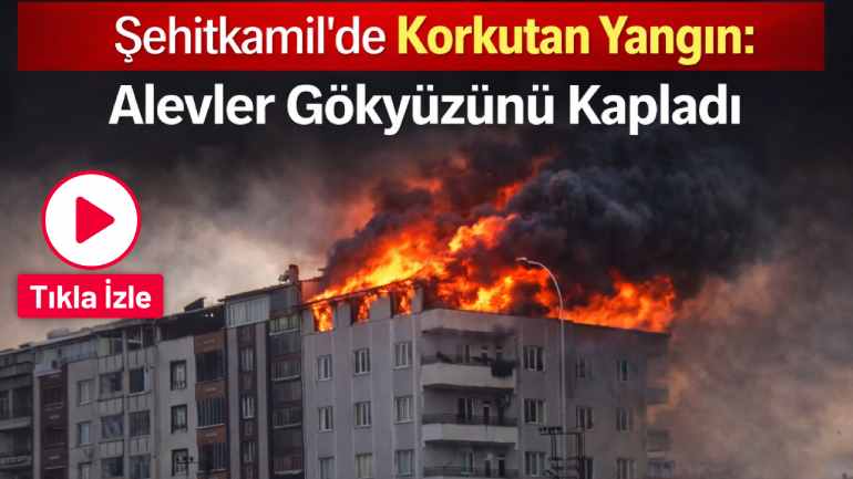 Gaziantep’te Şehitkamil Devlet Hastanesi yakınındaki bir binanın çatı katında çıkan yangın paniğe neden oldu; itfaiye ekipleri alevlere müdahale ediyor.
