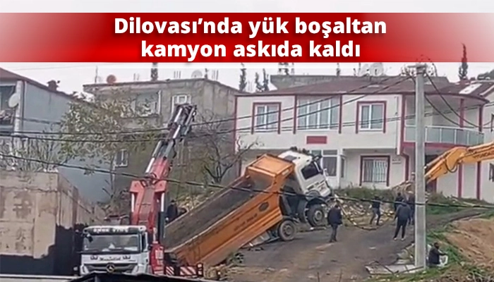 Dilovası’nda yük boşaltan kamyon askıda kaldı