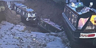 Na vodenom kanalu u okrugu Šropšir, u zapadnoj Engleskoj, otvorila se vrtača koja je povukla svu vodu, a čamci koji su u tom trenutku bili u blizini ostali su nasukani, a ima i onih koji se nalaze na ivici strme provalije, saopštila je lokalna policija.