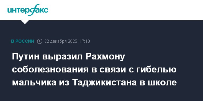 Президент РФ Владимир Путин выразил президенту Таджикистана Эмомали Рахмону соболезнования в связи с гибелью в подмосковной школе мальчика из этой страны.