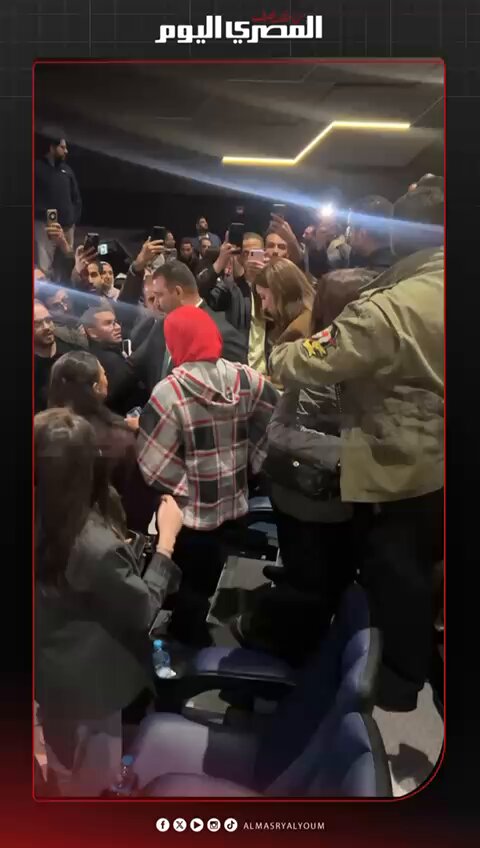 لحظة خروج دينا الشربيني وكريم عبدالعزيز عقب انتهاء العرض الخاص لفيلم طلقني تصوير أسامة علي