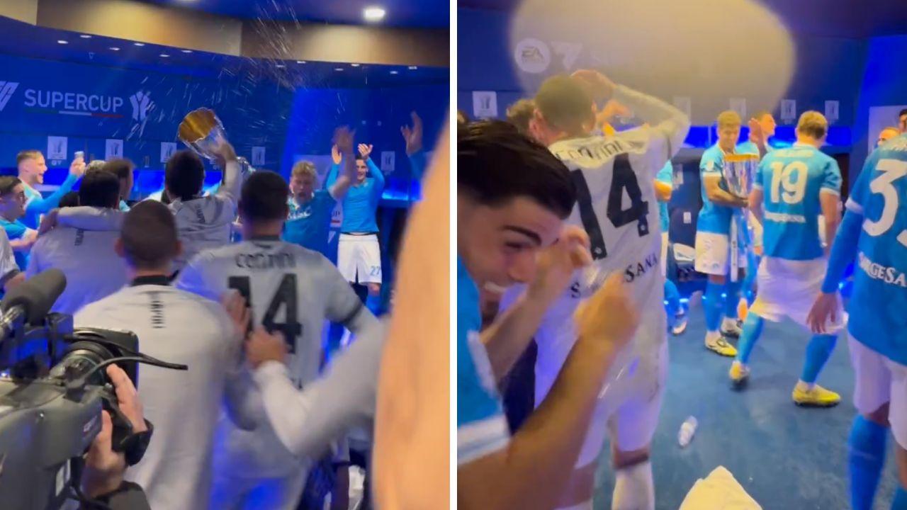 Il Napoli festeggia così: cori, sigari e champagne nello spogliatoio | VIDEO e FOTOGALLERY