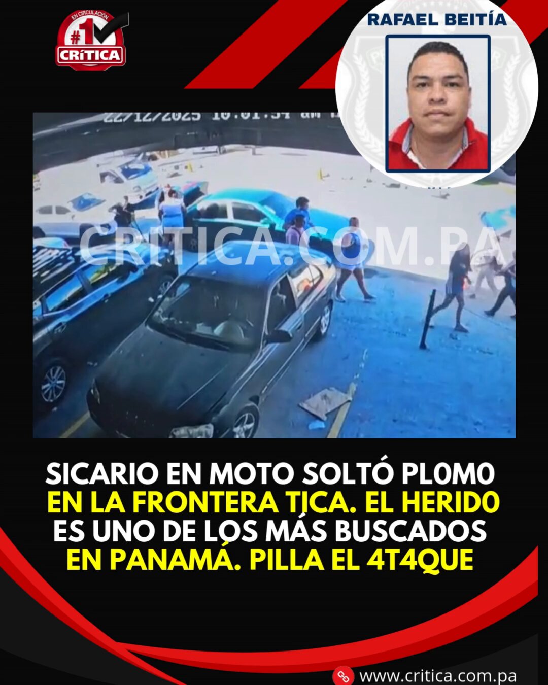 Una cámara grabó el instante exacto en que un sic4r10 se le pega sin titubeos a un auto y suelt4 pl0m0 contra Rafael Beitia, panameño que figura en la lista de los más buscados por h0m1c1d10.