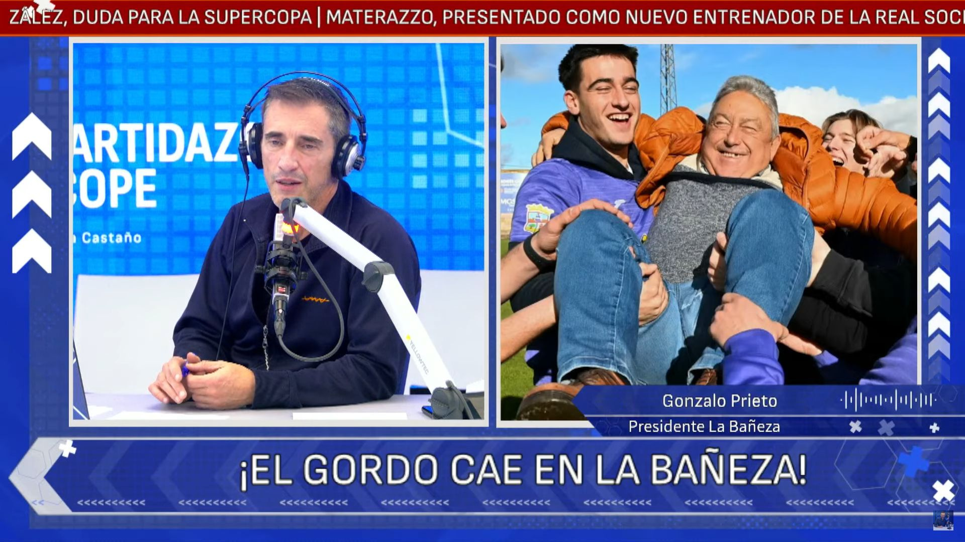 El equipo de fútbol de primera regional de León, La Bañeza FC, ha sido agraciado con 'El Gordo' de la Lotería de Navidad. El club ha repartido en total 291 millones de euros gracias a la venta de 670 décimos del número con el que llevaban jugando durante 17 años. La noticia ha supuesto un auténtico revulsivo económico y anímico tanto para el equipo como para la comarca. El presidente de La Bañeza CF, Gonzalo Prieto, se ha mostrado abrumado por la avalancha de llamadas y felicitaciones en el programa El Partidazo de COPE. Prieto, que lleva un décimo premiado, ha expresado su enorme alegría por el reparto del premio: "Soy una persona humilde, lo poco que tengo es lo que he trabajado toda la vida". El presidente ha confirmado que todos los jugadores y el cuerpo técnico tenían décimos, ya que el club les entrega una serie de diez para su venta. La suerte económica se une a la buena racha deportiva del equipo, que acumula siete jornadas seguidas ganando y ocupa puestos de playoff. Prieto ha pedido prudencia a los suyos: "Les pido que sean prudentes, que tengamos los pies en el suelo y que la vida sigue igual". Aun así, la esperanza es que este "pelotazo económico" ayude a conseguir el objetivo de volver a la categoría que más años ha jugado el club, la Tercera División. Este premio llega en un momento especialmente delicado para la zona. Gonzalo Prieto ha recordado el impacto del cierre de la Azucarera, una empresa pionera que fue patrocinadora del club durante años. A esta difícil situación se sumaron los graves incendios que afectaron a la comarca durante el verano, para los que el club organizó un partido benéfico. La otra cara de la noticia la representa Pablo Martínez, futbolista del equipo. El jugador se enteró de la noticia mientras trabajaba y ha confesado estar "todavía asimilándolo". Martínez tiene un décimo compartido con su hermana que le compró su madre, ya que él no suele jugar. "Me lo compró mi madre, que si no, a dos velas me hubiera quedado", ha admitido entre risas. El jugador ha explicado que él nunca vendía los décimos que le daba el club, por lo que sus amigos y su novia se han quedado sin premio. "Mi padre sí vendió los otros nueve", ha aclarado. Sobre la posibilidad de que algún compañero se haya quedado sin su décimo, ha comentado que "es una putada" y espera que todo el mundo cercano al club tenga su participación.