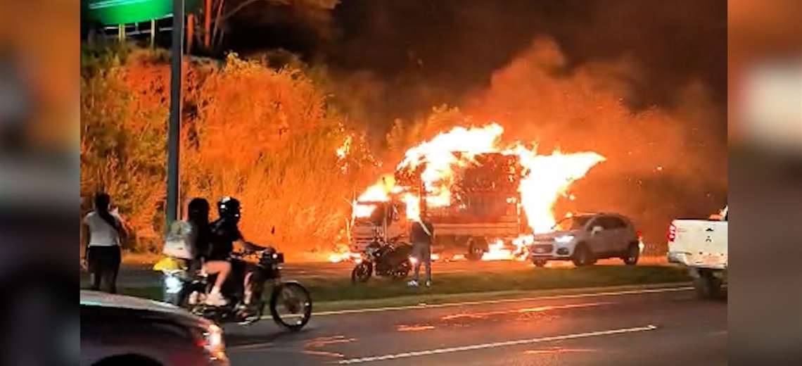 Infierno en la 27: Camión envuelto en llamas avanza sin control