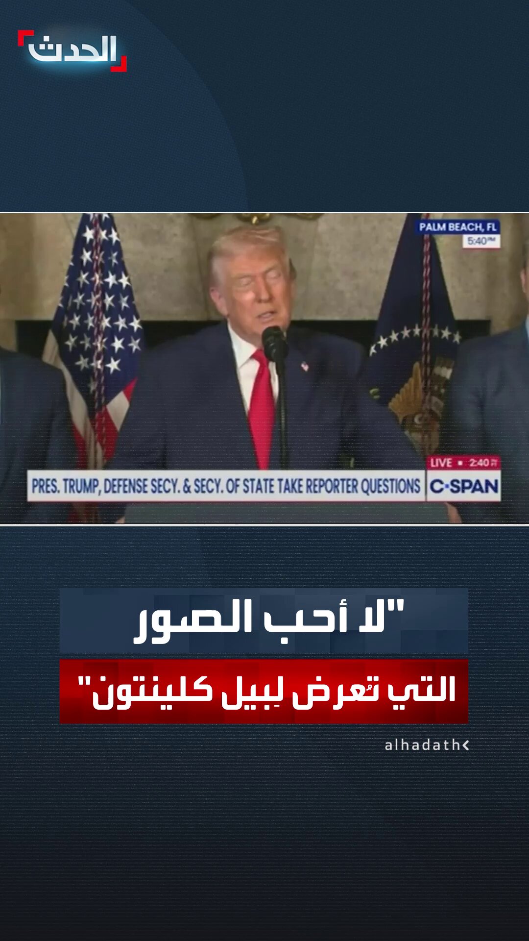 الرئيس الأميركي دونالد #ترمب: لا أحب الصور التي تُعرض لِبيل كلينتون. لا أحب الصور التي تُعرض لأشخاص آخرين أيضاً