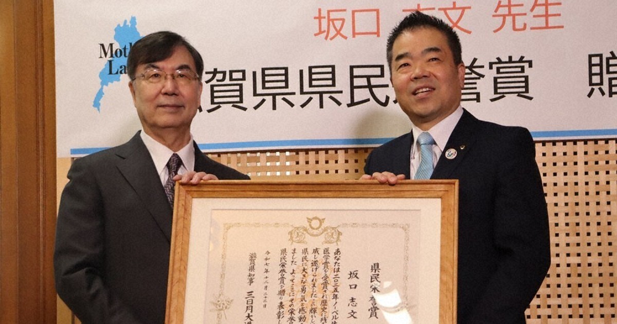 県民栄誉賞のノーベル賞・坂口さん「サイエンスは面白い」 滋賀