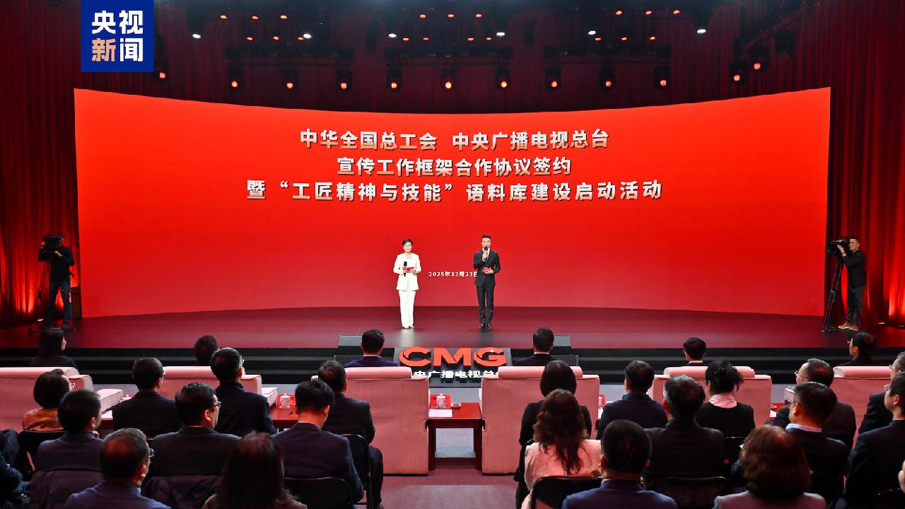 The All-China Federation of Trade Unions (ACFTU) and China Media Group (CMG) on Monday signed a framework agreement on publicity cooperation, and jointly launched the construction of a national-level corpus on "craftsmanship spirit and skills" in Beijing.