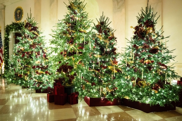 川普下令,今年圣诞节前后新增两个联邦假日。图为2025年12月1日,华盛顿特区白宫的圣诞装饰。(Madalina Kilroy/英文大纪元)