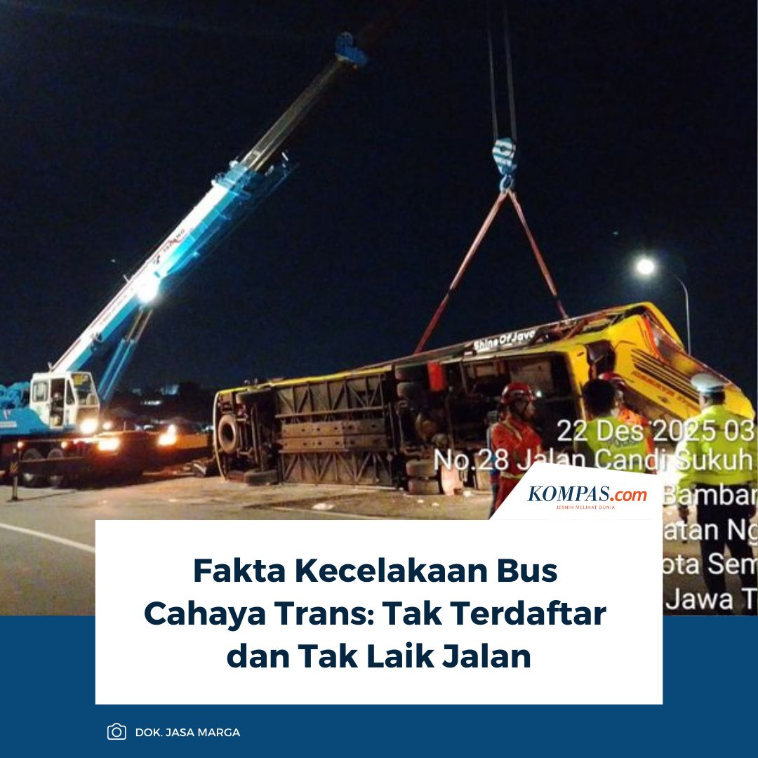 Kemenhub melalui Ditjen Hubdat, mengungkap fakta di balik kecelakaan yang menimpa bus PO Cahaya Trans di Tol Krapyak, ruas Jalan Tol Batang–Semarang, pada Senin (22/12/2025).